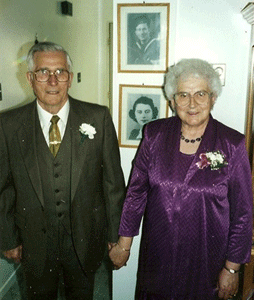 She lived in St John's NL for the first year while my grandfather did a trade in carpentry. She lived in Westport NL with her husband, and raised her family there til they moved to Lab City in 1963. They later moved back to Westport, back to Lab City, then to Pasadena. My Grandmother passed this past June. She was a wonderful woman with a big heart and a good sense of humor. Although she lived in Newfoundland most of her life she never did lose her Scottish accent, and it was a lot more pronounced when she spoke with her sisters back in Scotland. I have attached a couple of pics. One of their wedding day and one of their 50 th anniversary. In the background you can see a picture of my grandfather in his uniform, and my grandmother before she moved to Newfoundland, she was 16 in that picture.