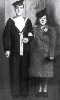 It was in Dundee, Scotland in the spring of 1943 that Mary Ann Page, known to her family as Nan, and her friend Reena had just left the movie theatre when a couple of servicemen started up a conversation with them. Seeing soldiers on the streets of Dundee during the war was nothing unusual but the pleasant young Newfoundlander who introduced himself as Dick Wheadon did get Nan's attention. Before long a courtship had started and on September 23, 1943 Richard Wheadon from Bradley's Cove and Mary Ann Page were married. At the time Dick's ship was docked in Dundee for a few weeks and after the wedding the newlyweds headed to Aberdeen for a honeymoon. The war years slipped by and in March of 1946 a brave but tearful Nan bid farewell to her family in Scotland and boarded the S.S. Scythia for a new life across the ocean. Friendships were forged aboard ship, some of which would last a lifetime. When the ship docked in Halifax, there was still a long journey for the girls who were headed for Newfoundland. Meanwhile Dick had arrived in Newfoundland a few days earlier, and though eager to see his family back home, decided that due to the uncertain winter weather, he was not taking any chances and perhaps not get back to St. John's on time to greet his wife. He stayed with his cousin in St. John's and eagerly awaited Nan's arrival. They boarded the train to Carbonear where they were met by Dick's brother with the horse and sled to bring them on the last leg of their journey and home.